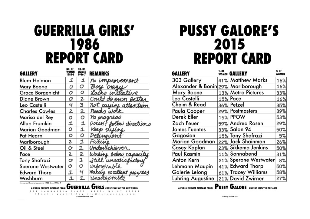 Guerilla Girls & Pussy Galore, Guerrilla Girls’ 1986 Report Card & Pussy Galore’s 2015 Report Card (1986/ 2015)